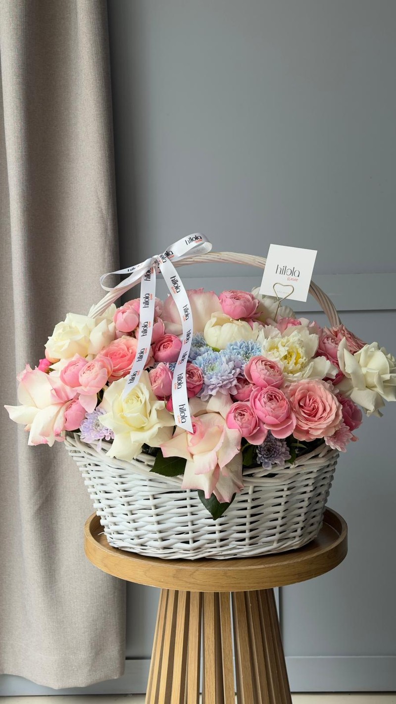 Şakayık, Hermosa ve Playa Blanca Sepet – Pembe Rüya, zarif beyaz hasır sepet içinde sunulan gösterişli bir çiçek düzenlemesidir. Beyaz şakayıkların dolgun ve büyüleyici yaprakları kompozisyonun kalbinde yer alırken, Hermosa güllerinin canlı pembe tonları neşeli bir enerji katar. Playa Blanca güllerinin bembeyaz zarafeti sakinlik sunarken, Light Pink ve Gender Party Altaj krizantemlerin pastel geçişleri büyüleyici bir derinlik yaratır. Mandala'nın zarif formu, Silva Pink'in romantik pembesi ve Wham'ın canlı tonları ise sepete zengin bir renk paleti kazandırır.